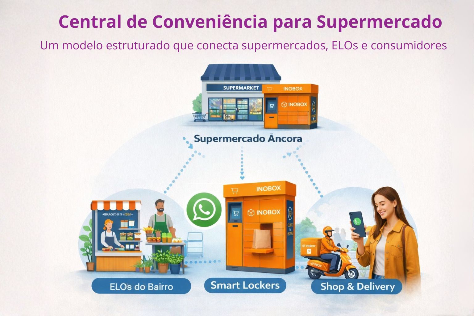 A INOBOX estrutura canais por WhatsApp, shopper & delivery, tecnologia e expansão progressiva para conectar supermercados, consumidores e negócios locais com mais conveniência e capacidade operacional.